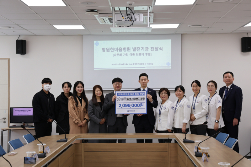 창원한마음병원(이사장 최경화)은 창원시민뮤지컬단(대표 이진석)이 다문화 가정 아동 의료비 지원을 위해 209만9000원을 후원해 24일 전달식을 열었다.