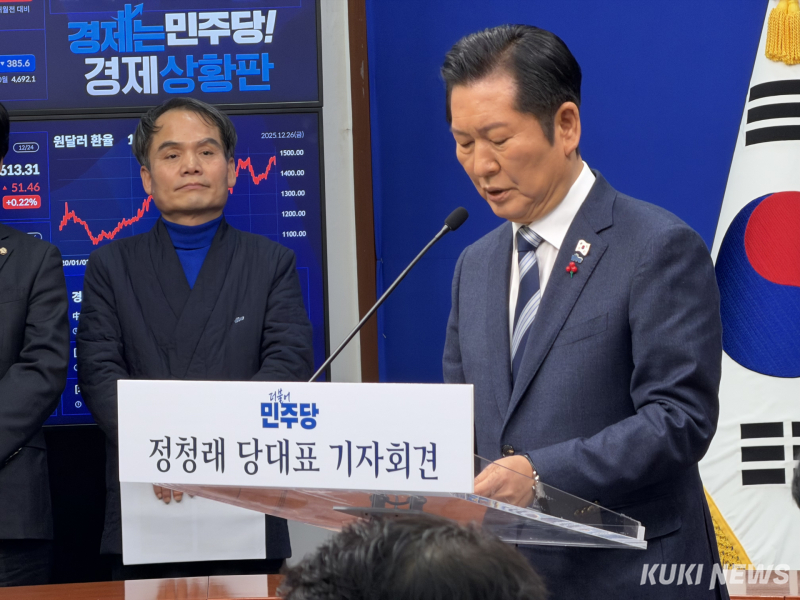 정 대표는 26일 국회에서 취임 후 첫 기자회견을 열고 “내란 청산과 개혁 완수를 향한 발걸음은 한 발짝도 물러설 수 없고 한시도 쉴 수 없다”며 “새해 첫 1호 법안은 2차 종합 특검이 돼야 한다고 생각한다”고 말했다.