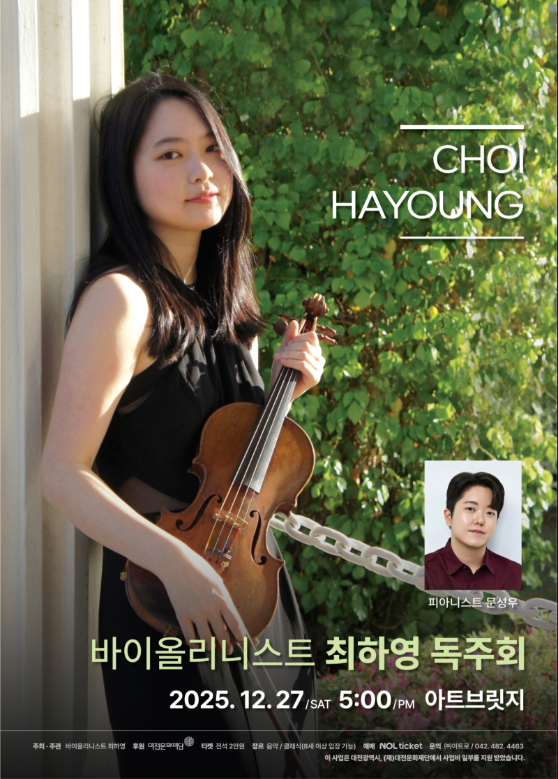 이번 독주회는 다채로운 레퍼토리와 더불어 바이올리니스트 최하영 만의 섬세한 표현력과 깊이 있는 해석에 피아니스트 문성우의 따뜻하고도 감성적인 터치가 더해져 연말을 아름다운 음악으로 채우는 선물 같은 시간이 될 예정이다.
