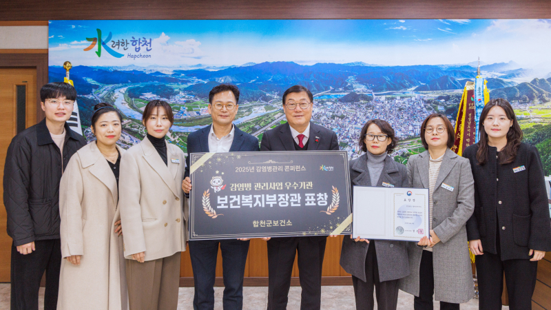 합천군은 질병관리청 주관 ‘2025년 감염병 예방관리 업무 평가’에서 보건복지부장관 기관표창을 수상했으며, 결핵관리사업 우수기관, 역학조사반 훈련 우수 표창 등 연이은 성과를 거뒀다.