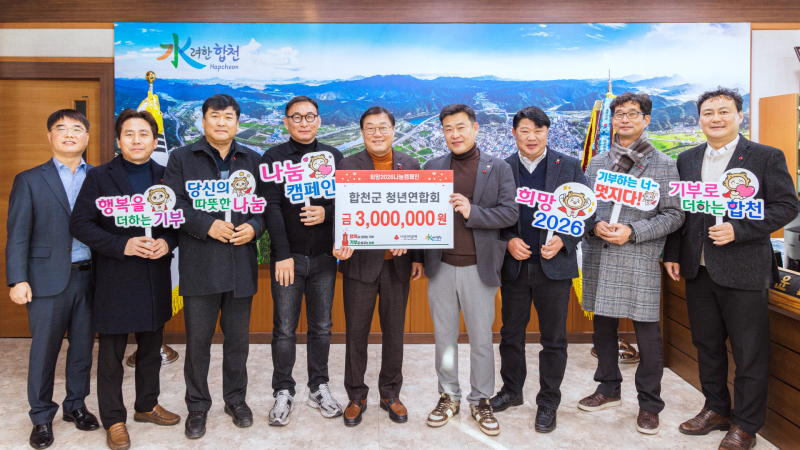 같은 날 합천군 청년연합회도 연말을 맞아 이웃돕기 성금 300만원을 기탁했으며 회원들의 자발적인 참여로 마련된 성금은 관내 취약계층을 위해 사용된다.