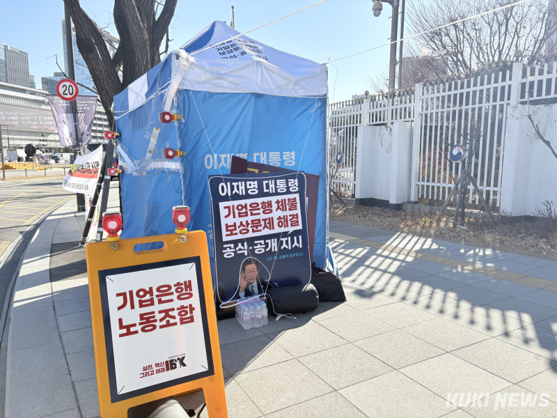 류 노조위원장은 “12월 초부터 ‘금융위 경예심에 기업은행 노조 요구안을 심의하라’며 금융위 앞 피켓시위를 진행해 왔다”면서 “지난 19일 ‘대통령 지시 사항’으로 ‘기업은행 문제 해결’이 거론된 만큼 사태 해결의 키를 쥐고 있는 금융위의 각성과 결단을 촉구하기 위해 천막 농성을 시작한다”라고 밝혔다.