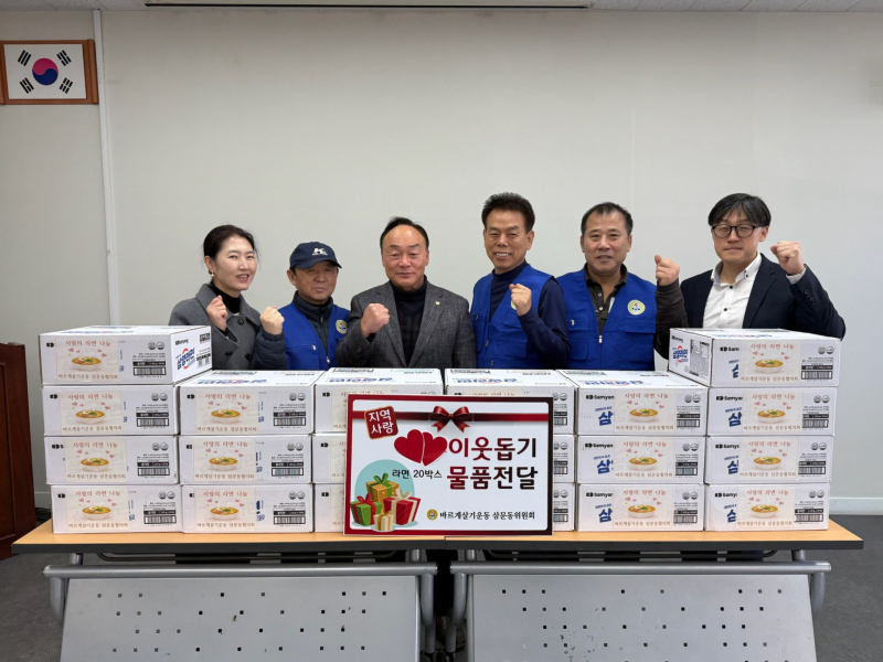 이와 함께 바르게살기운동 삼문동위원회(위원장 서창근)는 삼문동 행정복지센터를 방문해 라면 20박스를 기탁했다. 위원회는 환경정비와 각종 캠페인, 생필품 나눔 등을 통해 지속적인 봉사활동을 이어오고 있다.