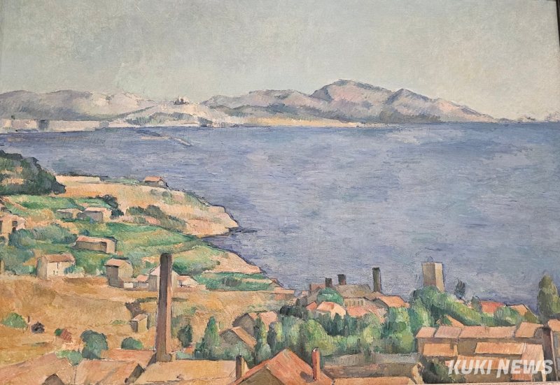세잔의 색채 이론은 명확했다. 따뜻한 붉은색 계열은 전진감을 주고, 차가운 푸른색 계열은 후퇴감을 준다. <레스타크에서 바라본 마르세유 만>에서 전경의 붉은 지붕, 중경의 초록 숲, 후경의 푸른 산은 이러한 색원근법의 실험을 보여준다. 이름 없는 마을, 잔잔한 바다, 어울리지 않는 굴뚝, 세잔은 매력적이지 않은 풍경 속에서 회화의 본질을 찾았다.