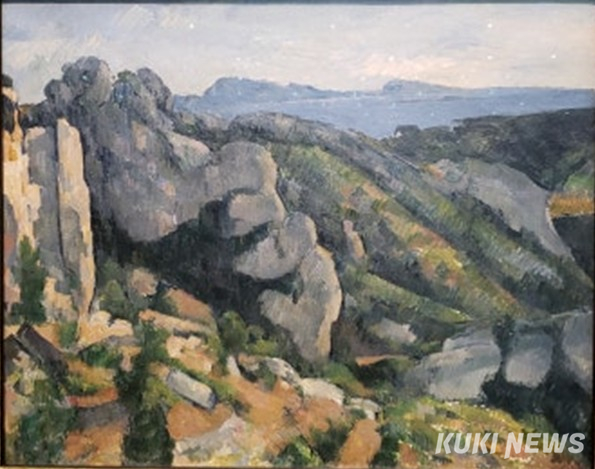 1876년, 세잔의 붓터치는 두껍고 거칠었으며, 화면은 묵직한 색과 형태로 가득 찼다. 하지만 시간이 흐르며 그의 그림은 점점 달라진다. 1882 년에서 1885년 사이에 그린 <레스타크의 절벽>에서 붓터치는 더욱 강렬하고 단호해 졌으며, 색채는 단순한 묘사를 넘어 공간을 만드는 도구가 된다.