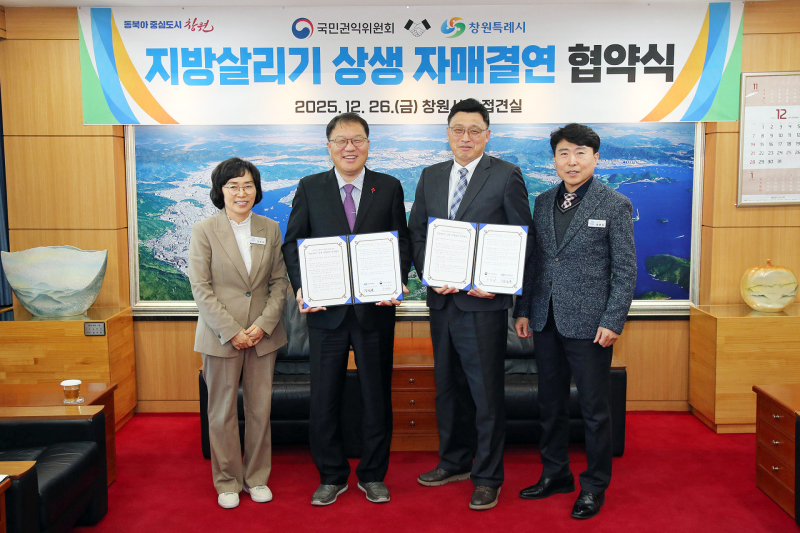 창원시는 26일 정부의 지방 활성화 정책의 하나로 국민권익위원회(위원장 유철환)와 자매결연 협약을 체결했다. 이번 협약은 중앙행정기관과 지방자치단체 간 협력 체계를 구축해 지역의 매력을 알리고 실질적인 지역경제 활성화로 이어가기 위해 마련됐다.