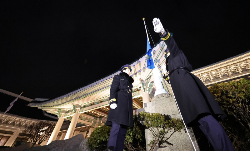 이날 오전 0시에는 한국 국가수반을 상징하는 봉황기가 청와대에 게양됐다. 대통령실의 공식명칭과 업무표장(로고)도 함께 변경됐다.