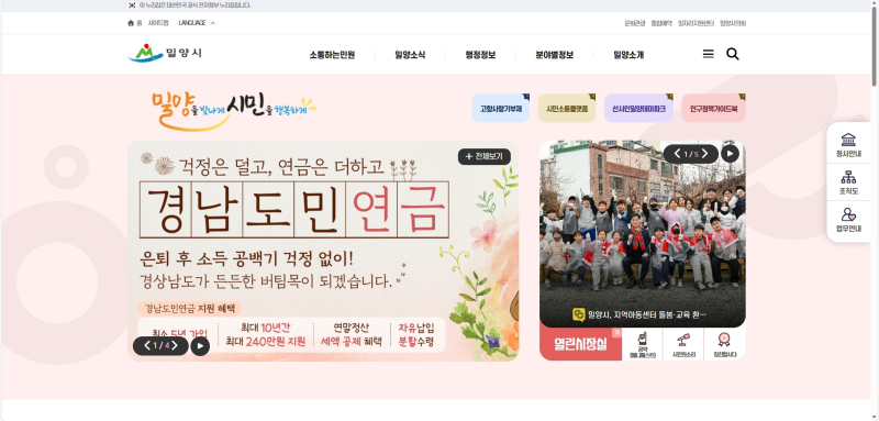 밀양시가 시민의 정보 접근성과 이용 편의 향상을 위해 대표 누리집(홈페이지)을 부분 개편했다.