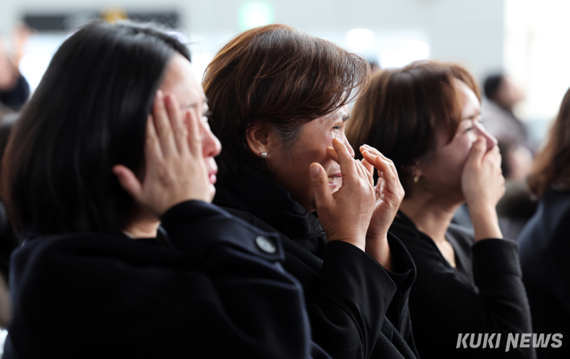 12.29 제주항공 여객기 참사 1주기인 29일 오전 전남 무안국제공항에서 추모식이 엄수되고 있는 가운데 유가족들이 눈물을 흘리고 있다.