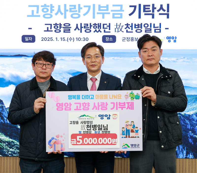 29일 전남 영암군에 따르면 올해 1월 병현 씨는 큰형인 병갑 씨와 함께 영암군에 둘째 형인 고인의 이름으로 500만 원을 고향사랑기부했고, 답례품도 영암읍지역사회보장협의체에 기부했다.