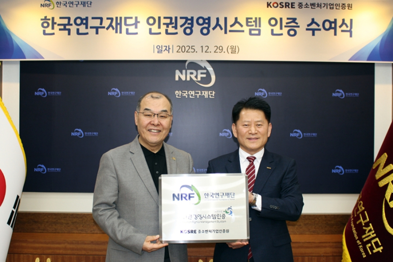 한국연구재단이 중소벤처기업인증원(이하 인증원) 인권경영시스템(HRMS) 인증을 취득했다.