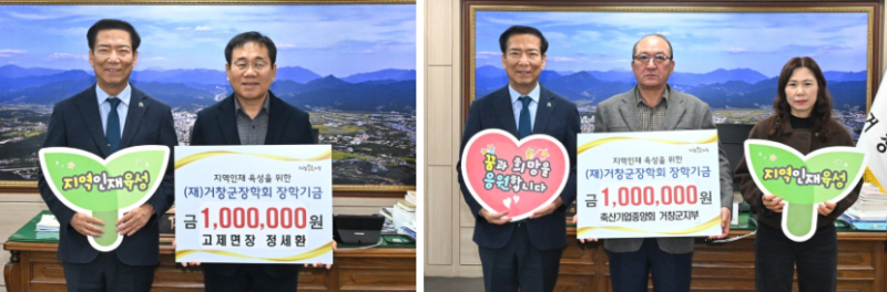 거창군에서 연말을 맞아 장학사업과 이웃돕기를 위한 기부 릴레이가 이어지며 지역사회에 온기를 전하고 있다.