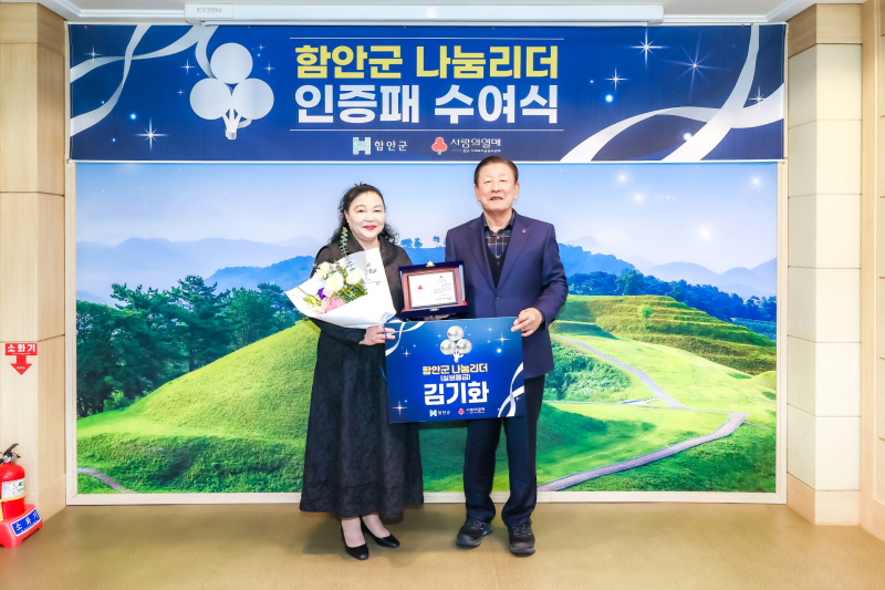 함안군은 지난 26일 인애노인복지센터 김기화 센터장이 경상남도사회복지공동모금회가 인증하는 ‘나눔리더 실버등급’으로 상향돼 함안군 최초의 나눔리더 실버 회원이 됐다.