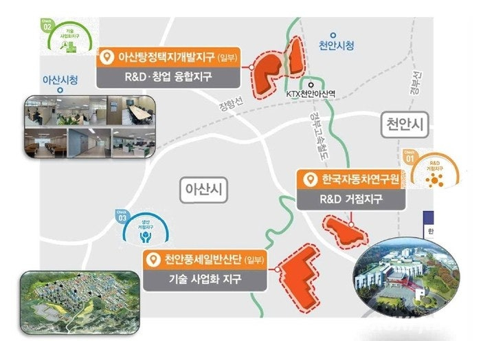 배후 공간인 연구개발(R&D)창업융합지구(아산탕정2 도시개발구역 일부) 0.35㎢ 및 기술사업화지구(천안제6일반산업단지 일부) 0.10㎢를 추가 지정한 것이다.