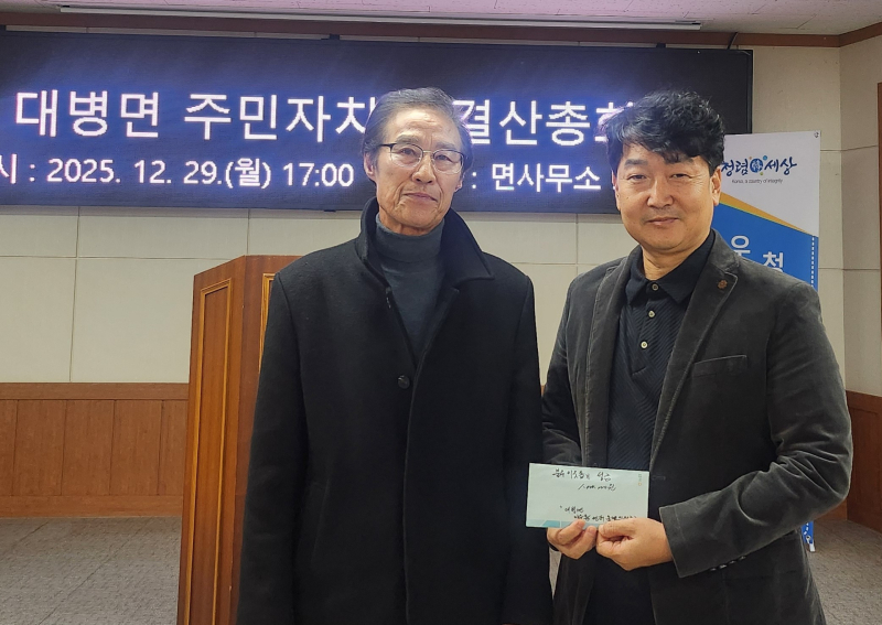 대병면 아우름센터 운영위원회(위원장 문형규)도 지난 29일 대병면사무소를 방문해 이웃돕기 성금 100만원을 기탁했다. 문 위원장은 “작은 정성이지만 지역사회에 보탬이 되길 바라는 마음”이라며 지속적인 나눔 의지를 전했다.
