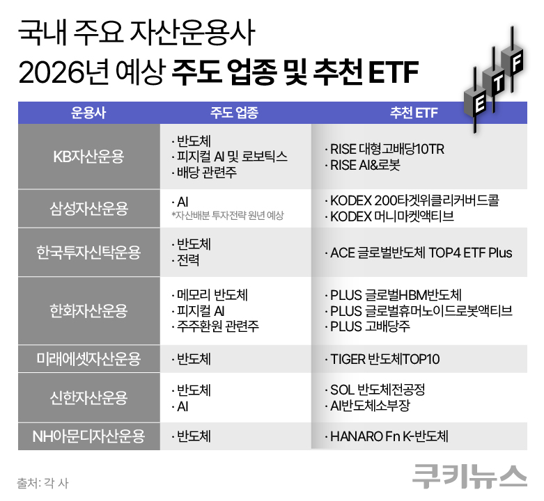 시장 규모와 상품 다양성이 동시에 확대되면서 투자자들의 시선은 이제 ‘얼마나 많은 ETF가 있는가’에서 ‘어떤 ETF가 다음 시장을 이끌 것인가’로 옮겨가고 있다. 주요 자산운용사들이 내다본 2026년 시장 주도 업종 전망과 추천 ETF를 통해 향후 투자 지형의 변화를 짚어봤다.