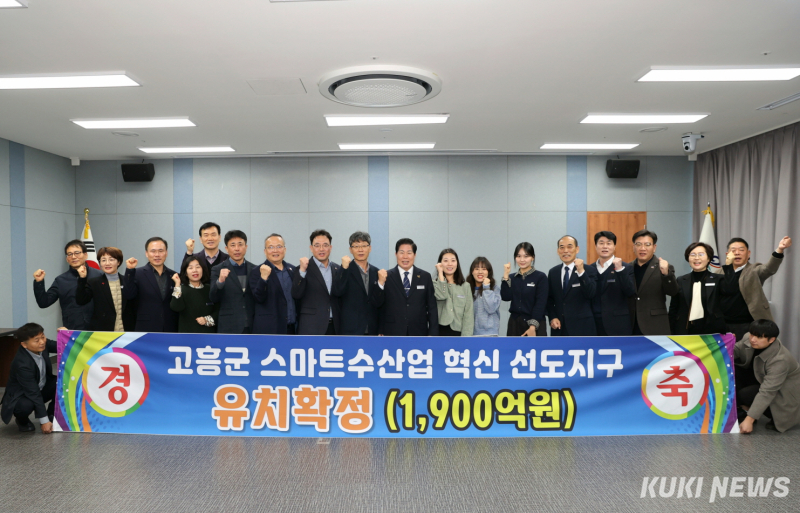 전남 고흥군이 해양수산부가 공모한 ‘스마트수산업 혁신 선도지구’ 조성 사업에 최종 선정돼, 총사업비 1,900억 원(국비 1,675억 원, 지방비 225억 원)을 확보했다.