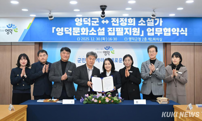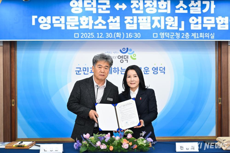 전정희 작가와 경북 영덕군(군수 김광열)은 30일 영덕군청 2층 제1회의실에서 ‘영덕문화소설 집필지원’을 위한 업무협약(MOU)을 체결했다.