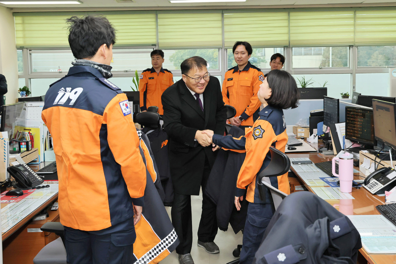 참배 일정을 마친 뒤에는 마산소방서 중앙119안전센터를 찾아 연휴와 새해에도 24시간 출동 태세를 유지하고 있는 소방대원들을 격려하고 화재·구조·구급 등 각종 재난 상황에 대비한 현장 대응체계를 직접 점검했다.