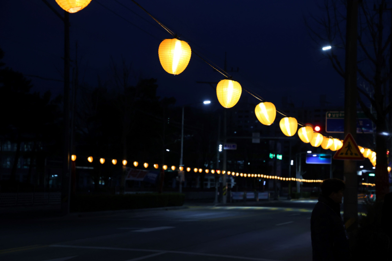 2일 상주시에 따르면 곶감축제 분위기를 띄우기 위해 동아아파트~상주시청~서문사거리~중앙사거리를 잇는 1.5km구간과 상주종합버스터미널~중앙사거리 0.7km, 축제장 인근 0.7km에 ‘곶감조명등’을 설치했다.