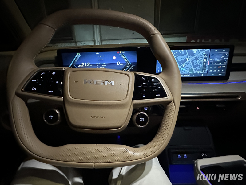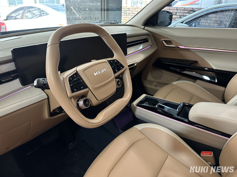외관은 쿠페형 실루엣을 강조한 ‘도심형 SUV’의 성격이 분명했다. 낮게 떨어지는 루프 라인과 긴 차체, 중형 SUV 대비 넓은 차폭이 어우러지며 안정감 있는 인상을 준다. 전면부에는 KGM 디자인 정체성을 상징하는 ‘건곤감리’ 패턴의 LED 주간주행등(DRL)이 적용돼 브랜드 아이덴티티를 강조했다.