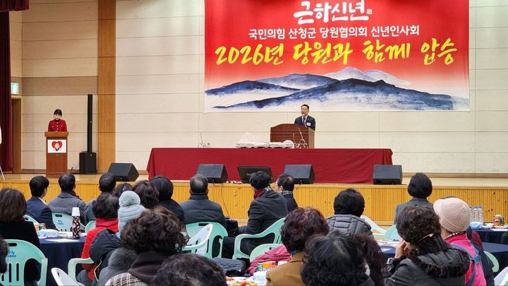 국민의힘 신성범 국회의원은 3일 산청군 실내체육관에서 당원들과 함께 신년인사회를 열고 새해 각오를 밝혔다.