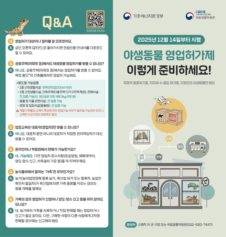 이번 제도는 ‘야생생물 보호 및 관리에 관한 법률’ 개정에 따라 야생동물의 무분별한 유통으로 인한 인수공통감염병 발생을 예방하고 사육 과정에서 유기되는 외래 야생동물로 인한 생태계 교란을 사전에 방지하기 위해 마련됐다.