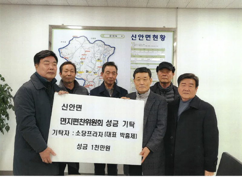 신안면 진태마을 출신인 박흠제 소당프라자 대표는 지난 1일 신안면 면지편찬위원회(위원장 이서우)에 1000만원을 지원했다.
