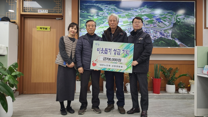 신등면에서는 신등면 노인회가 지난 5일 성금 70만원을 전달했다. 이번 성금은 각 경로당에서 십시일반 모은 것으로, 지역 내 저소득층을 위해 사용될 예정이다. 정현철 신등면장은 “해마다 이웃사랑을 실천해 주시는 어르신들께 감사드린다”며 “따뜻한 마음이 잘 전달되도록 하겠다”고 말했다.