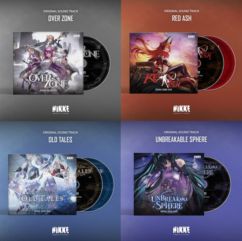 이번 OST 피지컬 앨범은 ‘OVER ZONE’, ‘RED ASH’, ‘OLD TALES’, ‘UNBREAKABLE SPHERE’ 총 4종이다. 2023년부터 2025년까지 공개돼 사랑받은 니케의 역대 N주년 기념 OST 음원이 CD에 수록되어 있다.