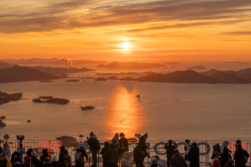 지난 1일 병오년 새해를 맞아 금오산 정상에는 일출을 보기 위해 모인 관광객들로 인산인해를 이뤘다. 남해 바다 위로 떠오르는 해와 섬들이 어우러진 풍경은 새해의 시작을 기념하기에 충분한 장관을 연출했다.
