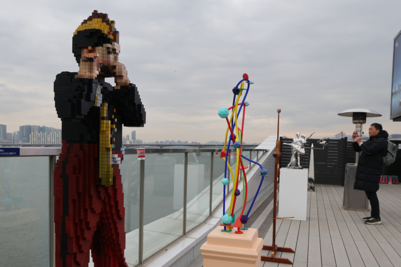9일 서울 여의도 한강버스 선착장에서 열린 제15회 서울국제조각페스타 2026 프리뷰 및 기자간담회에서 참석자들이 전시 작품을 살펴보고 있다.