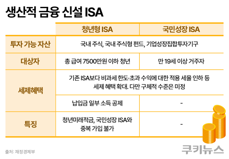 청년들을 겨냥한 ‘청년형 ISA’도 오는 6월 새로 문을 연다. 총급여 7500만원 이하의 만 19~34세 청년이 대상이며, 납입금에 대한 소득공제와 일정 한도 내 이자·배당소득 비과세 혜택이 주어진다. 다만 청년미래적금이나 국민성장 ISA와의 중복 가입은 제한된다. 정부는 이를 통해 단기 목돈 마련용 예금성 상품과 장기투자형 계좌로 금융자산 형성을 단계화한다는 계획이다.