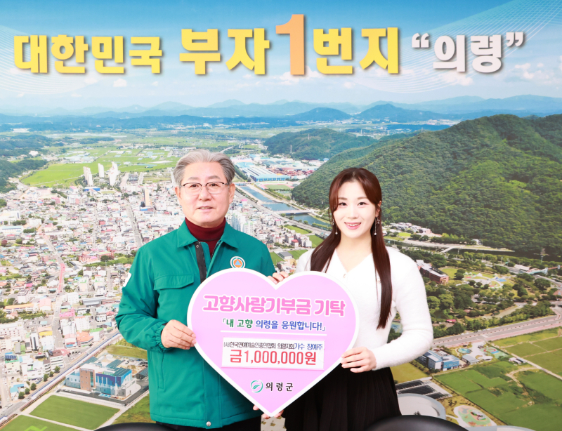 의령군은 (사)한국연예예술인총연합회 의령지회 소속 가수 장예주가 고향사랑기부제를 통해 의령군에 100만원을 기부했다고 밝혔다.