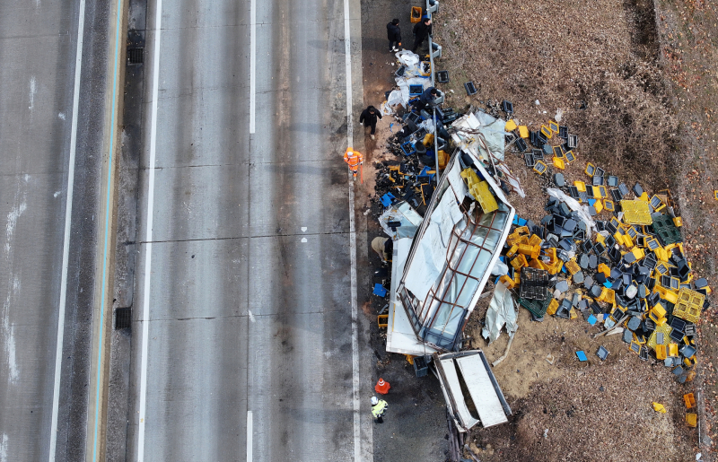 경북소방본부와 경북경찰청에 따르면 이날 오전 6시 10분께 남상주나들목 인근 영덕 방향 서산영덕고속도로에서 화물차가 전도돼 갓길을 벗어나면서 전복됐다. 이 사고로 화물차 운전자가 숨지고 뒤따라오던 차량 6대가 잇따라 부딪혀 7명이 다쳤다.