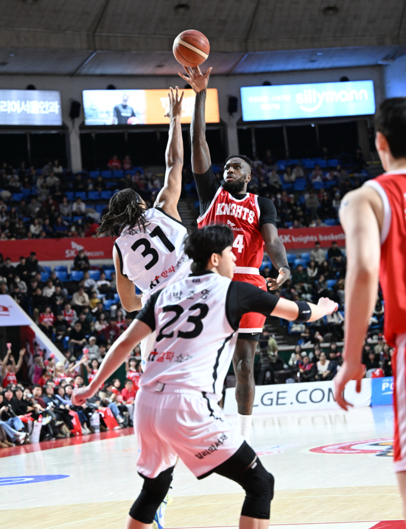 SK는 10일 잠실학생체육관에서 열린 KT와 2025~2026 LG전자 프로농구 정규리그에서 94-84로 이겼다.
