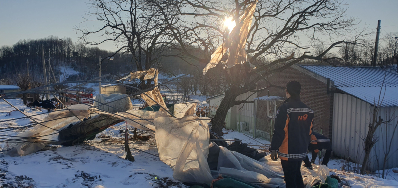 소방 당국은 “강풍과 눈이 이어질 경우 시설물 낙하와 도로 장애 위험이 커질 수 있다”며 안전에 각별한 주의를 당부했다.