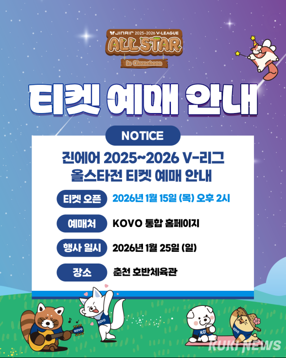 춘천시는 한국배구연맹이 25일 춘천 호반체육관에서 진에어 2025~2026 V-리그 올스타전을 개최한다고 밝혔다. 연고 구단이 없는 지역에서 처음으로 열리는 올스타전이다.