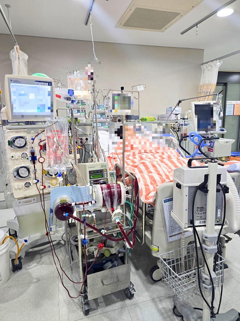 지난달 4일 안동병원에 도착한 환자는 즉시 에크모 치료를 시작했으며, 인공호흡기와 함께 24시간 연속 투석치료인 지속적 신대체요법(CRRT)을 병행하는 고난도 집중치료를 받았다.