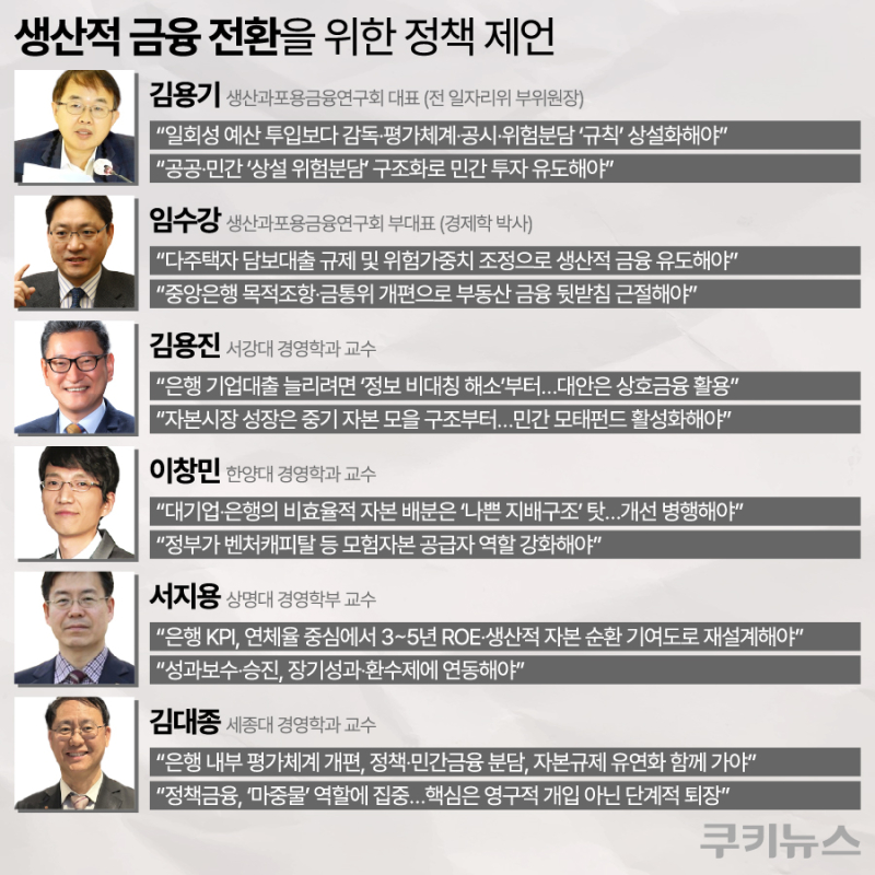 이처럼 외부 규제와 내부 요인이 동시에 얽힌 상황에서, 전문가들은 생산적 금융의 안착을 위해 지원 대상과 방식의 명확화가 시급하다고 입을 모은다. 은행의 기업대출 총량을 늘리는 ‘양적 확대’에 치중할지, 금융시스템의 무게중심을 투자 중심의 ‘모험자본 생태계’로 이동시킬 것인지에 대한 정책 방향부터 확정해야 한다는 지적이다.