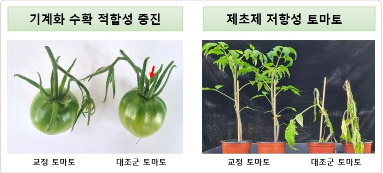 연구팀은 UtPE를 활용해 가공용 토마토에 제초제 저항성과 기계 수확에 유리한 '조인트리스(마디 없음)' 형질을 동시에 도입하는 데도 성공했다. 이는 대규모 재배와 기계화가 필수적인 글로벌 농업 현장에서 생산성을 크게 높일 수 있을 것으로 기대된다. 또한 이 기술은 벼와 같은 외떡잎식물에서도 높은 효율을 보이며 적용 범위를 넓혔다.
