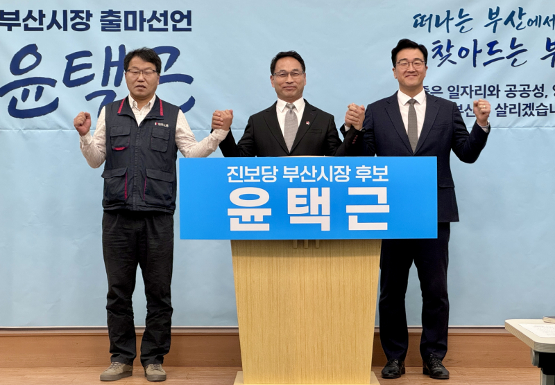 그는 "35년간 하루도 빠짐없이 좋은 일자리를 지키고, 만들고, 가꾸는 일에 삶을 바쳤다"며 "윤택근의 출마는 부산을 지키며 일하는 사람들이 부산의 운명을 바꾸겠다는 선언"이라고 강조했다.