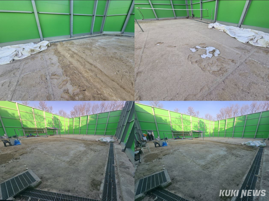 이곳을 이용하는 한 시민은 “비만 오면 바닥에 물이 고여 진흙탕이 되면서 사용할 수 없고, 겨울에는 그대로 바닥이 얼어 배드민턴 코트로서 역할을 하지 못하고 있다”며 “시가 5억원 넘게 혈세를 들여 만든 배드민턴장이 부실공사 때문에 헛돈 쓴 것 같다”고 말했다.