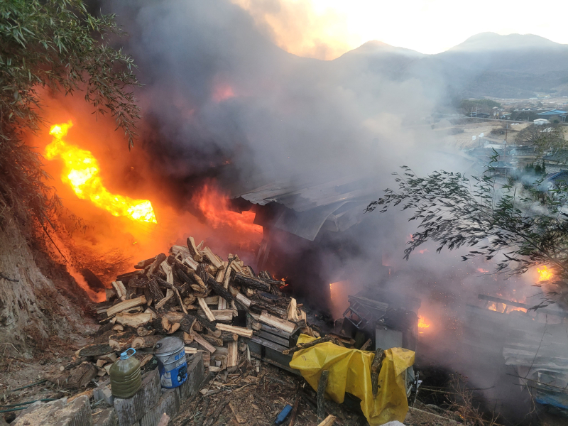 불은 화목난로에서 불이 난 것을 관계자가 발견해 119에 신고했으며 소방당국은 차량 14대와 인력 42명을 투입해 오전 8시23분께 불길을 잡았다.