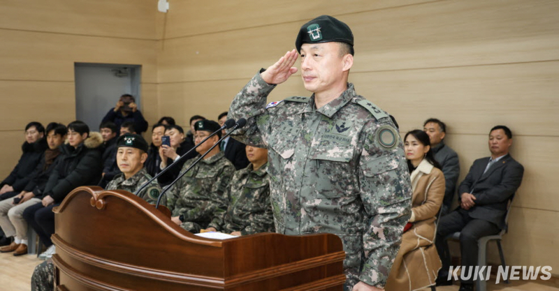 취임식은 국민의례, 인사명령 낭독, 부대기 수여, 2군단장 훈시, 취임사 순으로 진행됐다.
