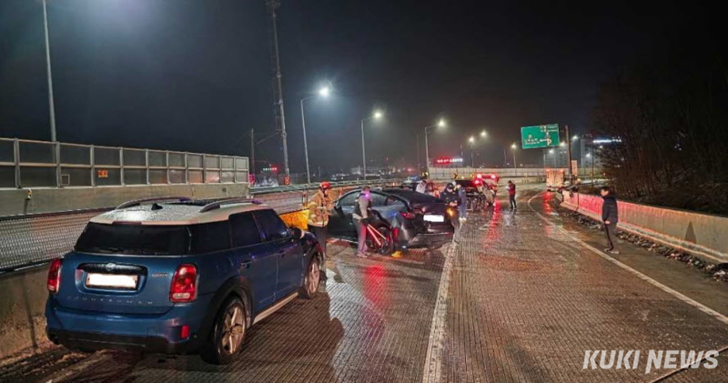 전날 오후 5시 44분께 춘천시 동면 만천리 공무원교육원 인근 순환로 도로에서 키니발 등 차량 3대가 추돌해 30대 카니발 운전자 등 3명이 다쳐 인근 병원으로 이송됐다.