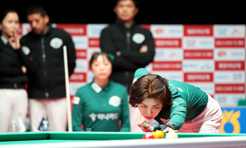 준플레이오프 1차전 승리의 주역은 ‘여성 듀오’ 임정숙과 백민주였다. 두 선수 모두 2승씩 올리며 귀중한 준플레이오프 1승을 안겼다. 경기 초반 분위기는 박빙이었다. 1세트 하나카드의 응우옌꾸옥응우옌(베트남)-신정주가 김재근-다비드 마르티네스(스페인)에 11:2(4이닝)로 승리하며 기선을 제압했지만, 2세트엔 크라운해태의 임정숙-백민주가 김가영-사카이 아야코(일본)를 상대로 9:6(5이닝)으로 곧장 응수했다.