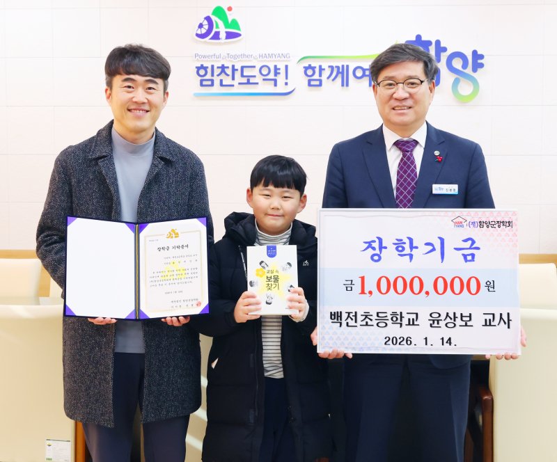 (재)함양군장학회는 지난 14일 백전초등학교 윤상보 교사와 함양군 산림경영인협회로부터 각각 100만원씩 총 200만원의 장학금을 기탁받았다고 밝혔다.