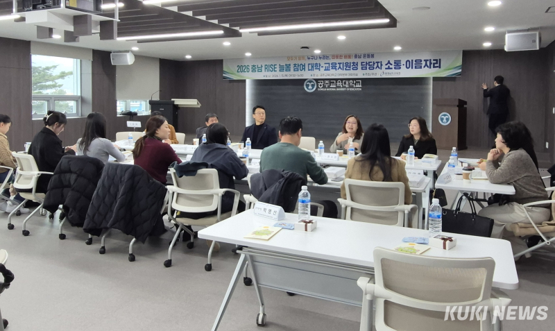 충남교육청은 15일 공주교육대학교에서 ‘2026 충남 라이즈(RISE) 늘봄 참여 대학–교육지원청 담당자 소통·이음자리’를 운영했다. 충남교육청은 15일 공주교육대학교에서 ‘2026 충남 라이즈(RISE) 늘봄 참여 대학–교육지원청 담당자 소통·이음자리’를 운영했다.