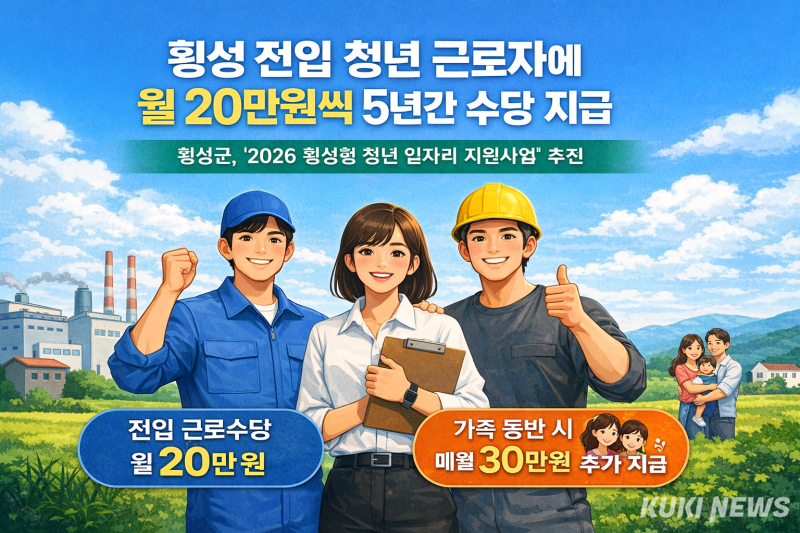 횡성군은 청년 근로자의 유입과 지역 안착을 돕기 위해 전입 근로 수당과 정착 지원금을 지급하는 ‘2026년 횡성형 청년 일자리 지원 사업’을 추진한다고 15일 밝혔다.